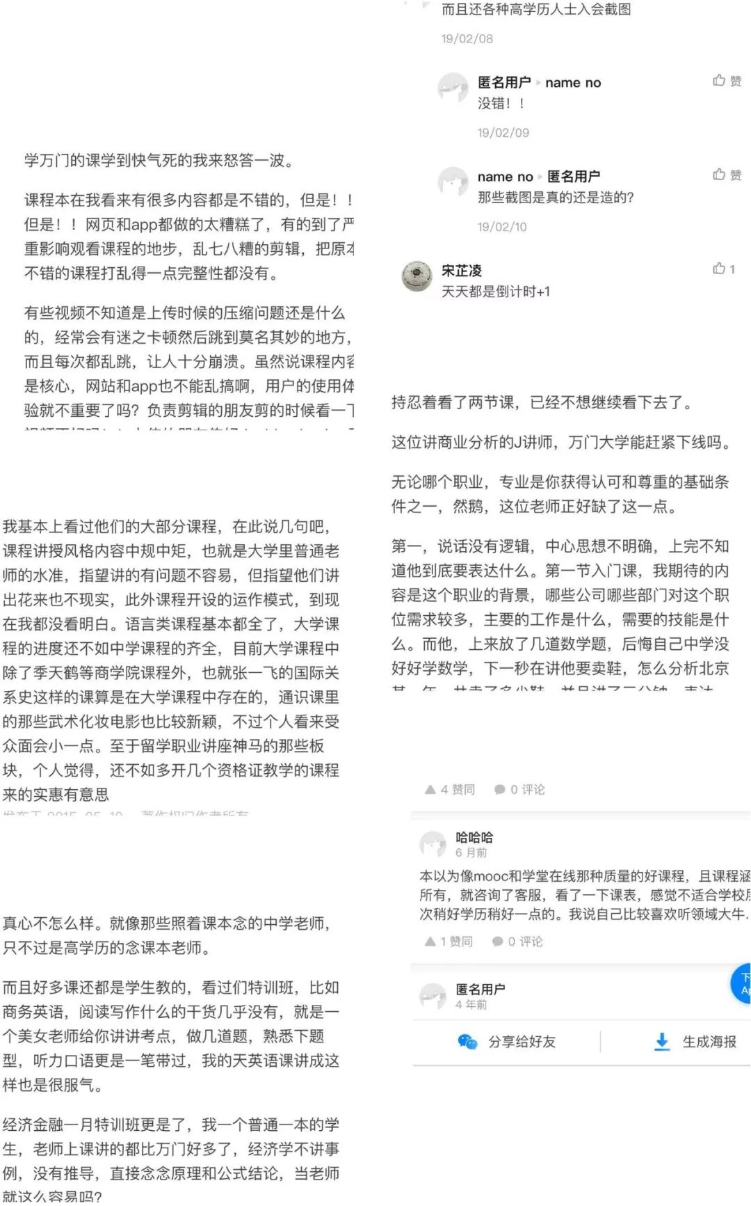 知乎上有多条网友对万门大学营销方式的吐槽