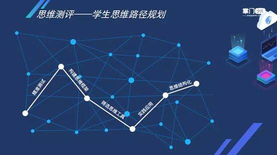 掌门思维教研院构建了五大科研层级,组成完整、立体的“智能+思维”研究体系。处在最底层的数据算法层重点提取学生日常解题的反应速度、思考时间和专注程度;模型构建层主要帮助学生构建创新、高效、系统以及解决问题的思维模型;创新工具层结合思维模型,有针对性的提炼出诸如感官探索、问题拆解、金字塔思维和思维导图等最优的思维工具,提高学生学习效率。