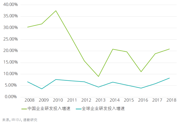 中国针对创新研发的人才和技术的投入也在持续增加。欧盟委员会旗下调研机构IRI每年发布的“全世界研发投入最多的2500家企业”中,中国企业的上榜数量逐年增加,上榜企业在过去10年中的研发投入增速远远高于世界平均水平。