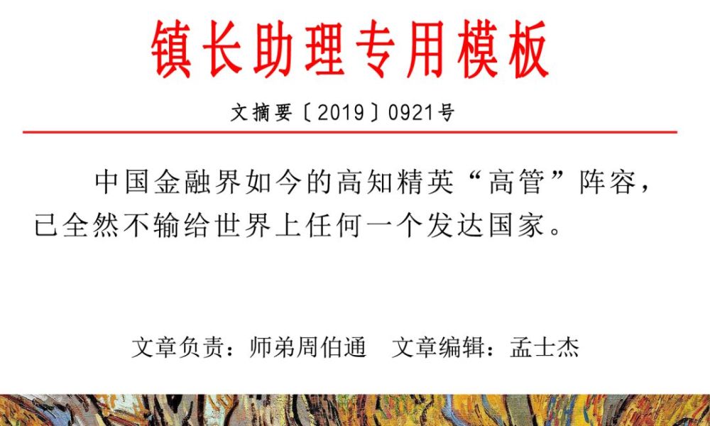 这些名字,也仅是盛景一角罢了。是的,中国金融界如今的高知“高管”阵容,已全然不输给世界上任何一个发达国家。