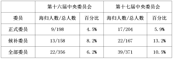 与第15届中央委员中的海归集中在苏联和东欧学习不同,第16、17届中央委员中的海归派大多在西方和日本接受教育。