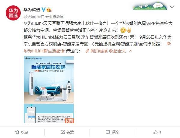 华为智选官方微博宣布,华为HiLink云云互联再添强大家电伙伴—格力!一个“华为智能家居”APP将掌控大部分格力空调。